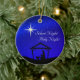 Belo Enfeites de natal personalizado retrata uma cena de natividade e a estrela de Belém num belo céu azul estrelado à noite. Ele mostra as palavras do amado carol, Noite Silenciosa, Noite Santa. O verso do ornamento tem as palavras para o primeiro verso da Noite Silenciosa e uma saudação com nomes e data ou você pode modificá-lo para os detalhes de sua escolha.-