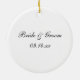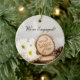 Ele propôs e você aceitou! Você está agora noiva de se casar. Celebre o seu primeiro Natal como um casal recém-noivo e comemore o dia especial com o Ornamento da Ronda de Noivados Russos da Rua Branca. Esta charmosa floresta ou Enfeites de natal de noivado com tema florestal apresenta uma fotografia típica de um buquê de flores margaridas brancas, fatia de madeira com a palavra LOVE queimado sobre ela, cone de pinheiro castanho e véu de brasa branco com uma rajada e fundo branco de cebola.