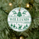 Adicione um toque clássico à sua árvore de Natal da família este ano com um ornamento personalizado que pode ser passado por gerações. Este ornamento de na moda apresenta renas e árvores de Natal em um verde tradicional de Natal (a cor pode ser alterada com a ferramenta de edição). Personalize adicionando seu nome de família.