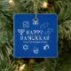 Feliz Hanukkah, presente personalizado de nome da família a favor do Ornamento de Cerâmica de Férias. Feliz Hanukkah, Feliz Chanukah, Hanukkah Sameach!, Chag Sameach!, Chag Urim Sameach! Azul e branco
