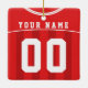 Fácil de editar futebol / futebol / ornamento de festas de camisa esportiva, basta usar as caixas à direita da imagem para inserir sua própria escolha de nome e número. Esta design de camisa é vermelha. A cor de fundo pode ser alterada, basta clicar em 'PERSONALIZAR'. Se você quiser um design personalizado feito em um esquema de cores específico, entre em contato comigo usando o link 'Contate este Designer' abaixo. Perfeito para qualquer feriado, seja Natal, aniversário, Hanukkah, ou qualquer celebração! Ideias de presentes de excelente para o fã ou jogador esportivo em sua vida.