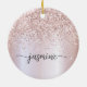 Ornamento De Cerâmica Nome de Monograma em Script com Brilho Rosa Bege G