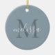 Ornamento De Cerâmica Nome do Monograma do Script Azul Elegante Natal