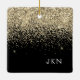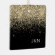 Ornamento De Cerâmica Nome do Monograma do Sparkle Glitter Negro Dourado