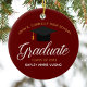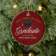 Este presente de Enfeites de natal de graduação em vermelho e ouro personalizado apresenta tipografia em branco-quic e ouro sob um nome de segundo grau ou faculdade para a classe de 2025. Personalize com o seu ano de graduação sob a adorável caligrafia para um excelente presente de formando personalizado.