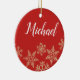 Ornamento De Cerâmica Nome e data personalizados vermelho e Dourado com