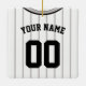Fácil de editar o ornamento de Natal de jérsey de baseball / softball, basta usar as caixas à direita da imagem para inserir sua própria escolha de nome e número. Esta design de camisa tem pinças de cinza e trim preto. A cor de fundo pode ser alterada, basta clicar em 'PERSONALIZAR'. Se você quiser um design personalizado feito em um esquema de cores específico, entre em contato comigo usando o link 'Contate este Designer' abaixo. Perfeito para qualquer feriado, seja Natal, aniversário, Hanukkah, ou qualquer celebração! Ideias de presentes de excelente para o fã ou jogador esportivo em sua vida.