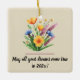 Ideal para amarrar um pacote para decoração. Dê um adorno de Feliz ano novo elegante para mostrar o ano todo. Um buquê floral de cor d'água brilhante e texto de ano novo decoram este ornamento cerâmico branco quadrado. O fundo é uma cor pérola. Mude facilmente o texto para frente e para trás e o nome na parte traseira usando o Modelo fornecido. Consulte "Sobre este produto" ao lado para obter mais informações.