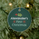 Uma design de Natal rústica e desenhada à mão para o primeiro Natal do bebê. Este item pode ser personalizado com um nome, monograma ou outra frase. As cores incluem as tradicionais cores de Natal de verde, vermelho e branco, bem como o verde-escuro e o verde-menta. Um presente de excelente feriado ou guardar o primeiro Natal do bebê.