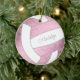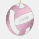 Esse ornamento bonito de vôlei apresenta a imagem realista de um vôlei com painéis cor-de-rosa e brancos empoeirados sobre os quais você pode personalizar seu nome na frente e no ano atrás - os painéis cor-de-rosa de vôlei são misturados com um padrão caleidoscópico floral feminino - por katz_d_zynes