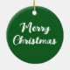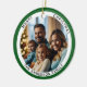 Personalize esta decoração elegante de Natal em cerâmica com a sua fotografia e o(s) nome(s) da família escolhidos. Na frente, sua foto aparecerá no centro da design, cercada por uma borda verde e branca de inverno e texto preto na moda. O texto no topo é Feliz Natal, e seu texto personalizado estará abaixo da imagem. No verso, o ornamento festivo é vermelho com as saudações de Feliz Natal em tipografia branca. Ideal por enviar suas saudações festivas e alegria sazonal para amigos e família, esta adorável decoração também faz um bonito presente de guardiã.
