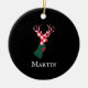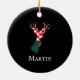 Ornamento De Cerâmica Nome Personalizado da Xadrez Vermelha da Reindeer