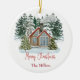 Ornamento De Cerâmica Nome Personalizável de Feliz Natal da Cabina
