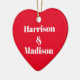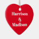 Ornamento De Cerâmica Nomes de casal de coração vermelho moderno