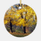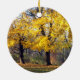Um par de Norway Maples iluminado de trás ao sol da manhã numa manhã de outono na Pensilvânia