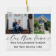 Duas fotos modernas e mínimas, novo ornamento de manutenção em casa. Personalize com duas fotos, nome da família, ano e endereço. "Nossas Novas Casas" é exibido em um roteiro elegante. Este ornamento faria um presente de excelente para um presente de inauguração.
