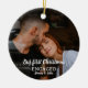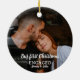 Ornamento De Cerâmica Nossa Primeira Foto de Script Whimsical Engajada n