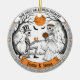 Celebre o seu primeiro Dia das Bruxas com esta impressionante Ornamento de Casamento de Esqueleto! Apresentando um design gótico desenhado à mão de um noivo esquelético propondo com um anel e uma noiva segurando rosas, colocado contra um pano de fundo assustador de morcegos, árvores e um sol brilhante. Perfeito para personalizar com seus nomes e ano (como Jessica & Jonathan 2025), este ornamento é ideal para pendurar em sua árvore ou como uma única manutenção. Feito com materiais premium, é perfeito para amantes do Halloween e casais engajados. Personalize o seu agora para um tesouro memorável de 2025!