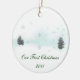 Uma paisagem simples mas elegante em um ornamento que comemora "nosso primeiro Natal".