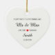 Celebre seu primeiro feriado como recém-casados com este elegante Nosso Primeiro Natal como o ornamento em forma de coração do Sr. & Sra. Projetado para incluir seus nomes personalizados com um belo coração vermelho no meio, seu sobrenome, e sua data de casamento, esta manutenção faz um belo lembrete de sua história de amor. Disponível em diferentes formas, como redondo, quadrado e muito mais — basta ajustar o design para que ele ajustado a nova forma corretamente. Um presente de eterno para casamentos, aniversários, ou seu primeiro Natal juntos como marido e mulher.