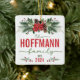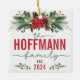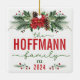 Personalize este elegante ornamento de natal "Nosso Primeiro Natal Casado" A Família de {Sobrenome} est. ano {2024} de cerâmica de dupla face - um perfeito presente de casamento de manutenção personalizado para celebrar o primeiro Natal do recém-casado como Sr. & Sra!