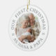 Celebrar se tornar avós com um moderno ornamento cerâmico branco. "NOSSO PRIMEIRO NATAL" se curva acima e "AS NANA & PAPA" abaixo, preparando uma janela de fotos de borda suave. Números de ano dividido (20 | 25) mantenha o layout balanceado e fácil de atualizar. A tipografia serif limpa e as fotos recém-nascidas de paleta neutra flatter e excelente em qualquer árvore ou caixa de presentes. Adicione a sua foto favorita e marque o ano para uma manutenção do eterno que eles vão enforcar todo dezembro.