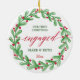 Nosso Primeiro Natal Envolveu Casais Personalizados Envolvendo O Ornamento Cerâmico. Personalize com suas informações personalizadas tanto na frente quanto na parte traseira.
