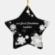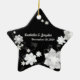 Flores de tecido brancas brilhantes e flocos de neve + espirais de popa em tons de cinza desenhados em ornamentos de presente personalizados. O ornamento em forma de estrela pode fazer uma encantadora e especial manutenção para recém-casados! Todo o texto de amostra pode ser facilmente personalizado com sua própria redação. Sinta-se livre para editar as cores, tamanhos e fontes do texto também. ((Você pode encontrar os essenciais de casamento e favores nesta loja, Bridal Heaven. Entre em contato com ujean4791@gmail.com para obter trabalho personalizado e/ou coordenar papelaria de casamento.)