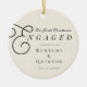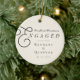 Este design moderno minimalista de ornamento duplo "Nosso Primeiro Natal Noivos" apresenta uma foto com sangria total com o monograma do casal na frente e tipografia clássica serifada e os nomes do casal com a data do noivado no verso.