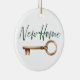 Celebre sua nova casa com este encantador ornamento cerâmico branco, com 'Nova Casa' em um elegante roteiro verde e um clássico design de chave de porta. O verso oferece espaço para texto personalizado, como nome, data ou mensagem especial. Uma manutenção perfeita para os exércitos domésticos, donativos imobiliários, ou o seu próprio marco.