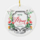 Nova Mãe Estabeleceu Um Ornamento De Cerâmica Floral Personalizado Por Aquarela. Personalize com suas informações personalizadas tanto na frente quanto na parte traseira.
