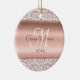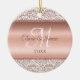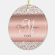 Ornamento De Cerâmica Novo Rosa Elegante de Foto Monograma Dourado