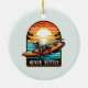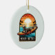 Ornamento De Cerâmica Nunca Melhor - Skelset surfando Onda Sunset