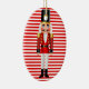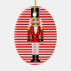 Nutcracker contra um fundo listrado vermelho e branco na parte dianteira. Personalize a parte traseira com o nome de sua criança e do ano.