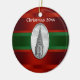 Nova Iorque Skyline: Prédio Chrysler em Preto e Branco - Enfeites de natal O horizonte de Nova Iorque com o icônico Prédio Chrysler em um quadro de olhar prateado contra um fundo de gradiente vermelho profundo com uma fita verde festiva. 2012 ©NYCisMyMuse