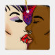 Casal inter-racial desenhado pela mão possivelmente transgênero, androgênio com piercings e belos fazem um Enfeites de natal colorido do estilo. Personalize-o por trás com qualquer mensagem que você quiser.