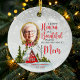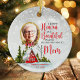 Honre a memória de sua amada mãe com este sincero ornamento memorial "Eu Sei que o Céu é um Lugar Bonito Porque Eles Têm Minha Mãe". Com uma foto personalizável, uma cena invernal com uma cabana vermelha e uma mensagem tocante, este ornamento é um souvenir reconfortante para lembrar sua mãe durante a temporada de festas. Personalize-o com o nome dela e datas para uma homenagem especial que mantém sua memória próxima.