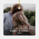 Nosso Primeiro Natal Envolveu Foto Mínima Moderna Cerâmica Ornament. Modelo moderno elegante de foto do casal do noivado com texto simples para personalizar o ornamento com o nome do casal e o ano do noivado. Entre em contato comigo em truullc@gmail.com para obter produtos correspondentes ou assistência para fazer pedidos. feriado perfeito, festa de noivado ou presente de casamento para o novo casal.