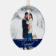 Nosso Primeiro Natal Engajado Casal Foto Blue Ornament com flocos de neve de volta.