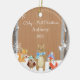 Celebre o primeiro Natal de um bebê com este adorno memorável. Apresenta uma cena de floresta de inverno com animais florestais vestindo chapéus na neve. Há um esquilo de urso, raposa, e uma coruja, Personalizar com um nome.