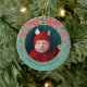 Ornamento De Cerâmica O Primeiro Natal do Bebê da Poinsettia Vermelha e