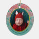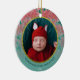 Comemore o primeiro Natal do seu bebê recém-nascido com este elegante ornamento personalizado da poinsettia vermelha e verde. Este ornamento é totalmente personalizável! Você pode editar o texto e adicionar sua própria foto clicando em "personalizar esta modelo". Este ornamento de poinsettia de Natal tem um espaço para você adicionar sua foto de bebê, nome de bebê e ano. Ele apresenta um padrão de flores de poinsettia, vermelho e verde, bem como uma estrutura redonda dourada que rodeia a foto do bebê. Esquema clássico de cor vermelha e verde para um adorável ornamento "Primeiro Natal do Bebê" personalizado.