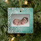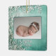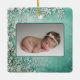 O Primeiro Natal do Bebê é o ornamento cerâmico verde/teal. Este enfeite verde de inverno é um perfeito guardião para o primeiro Natal do seu bebê. Apresentando um delicado design botânico verde e branco, ele segura uma foto e inclui detalhes personalizados de nascimento como nome, data, peso e comprimento no verso. Os tons verdes/teais profundos e detalhes complexos trazem charme de eterno, fazer-o uma bela adição à decoração de suas festas. Uma manutenção significativa que comemora o primeiro feriado do seu bebê, será apreciada por anos.