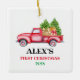 Primeiro Ornamento de Natal do Bebê - Primeiro Natal Vintage Red Truck Watercolor Design Personalizado Ornament - Ornamento Personalizado de Bebês Meninas Meninas Truck. Informe Nome e Ano - cada um em sua própria linha. Inclua apóstrofo "s" com o nome se você quiser que ele apareça como uma foto.