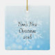 O primeiro enfeite de natal do bebê. Plano de fundo de personalização azul.