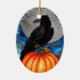Pintura original de Sandra Gale para a temporada de Halloween, com um raven preto gravado numa abóbora. Excelente para crianças e adultos celebrar o feriado assustador do Dia das Bruxas.
