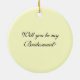 Convide seus amigos e a família a ser um assistente nupcial na festa de casamento de suas próximos núpcias com o rosa branco e as pérolas elegantes quê-lo seja meu ornamento redondo da dama de honra. Mude o texto para criar uma vontade que você seja meu madrinha de casamento ou florista, se desejado. Este ornamento botânico bonito do convite da dama de honra caracteriza um fim acima da fotografia floral de uma flor da flor do rosa branco, de uma colar branca da pérola e de um anel de noivado do diamante.