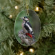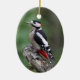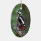 Um pica-pau manchado excelente é representado em um lado deste produto e no outro lado estão as palavras: Observador de pássaro impresso no preto na parte superior. Um par de binóculos é no centro e as palavras: Escuta Observe é imprimida no preto abaixo dos binóculos. Um matiz azulado é usado no fundo (similar ao céu aonde os pássaros voam).