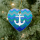 Silhueta branca lisa simples da âncora em um fundo ondulado temático da água bonita que consiste em máscaras e em matizes diferentes do azul.