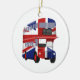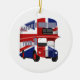 A ilustração de um ônibus do autocarro de dois andares de Londres projetou na bandeira de Union Jack da libré BRITÂNICA. Facilmente personalize e escolha sua própria cor do fundo ou adicione o texto. Imagem disponível em vários presentes e produtos.